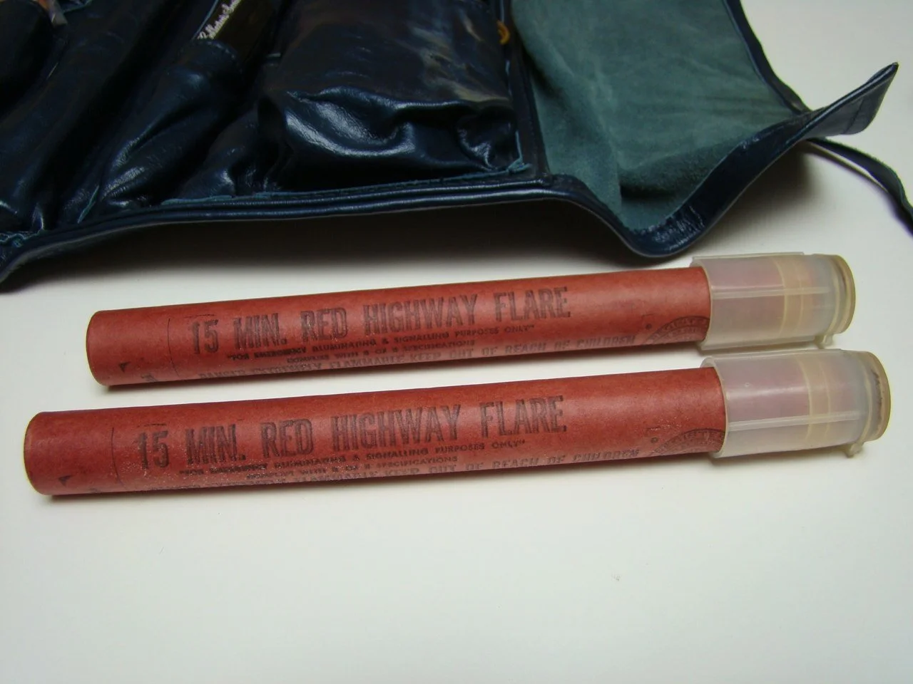 Only Collector’s Series received this special and well constructed leather tool kit that was held in place in the trunk by leather straps. The finest tools were included by the best makers. The flash light was by Blue Star who made flashlights for the US military for decades. Some of the handles on the tools were embossed with the Collector’s Series script. A set of flares was also included along with a handy fuse puller. Note the original Blue Star batterys are still intact with this kit.