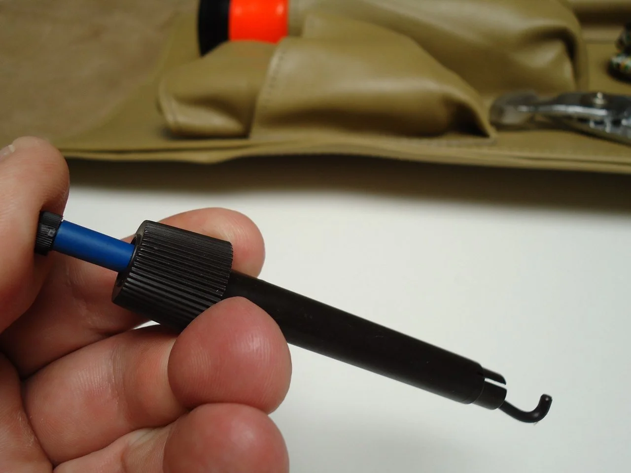 A very special best quality leather cover was provided to each new owner of the Diamond Jubilee Mark V to house their owner’s manual and other car papers. The manual cover came in two colors: Wedgewood Blue and Jubilee Gold leather. A Knirps umbrella was also included along with a leather carrying case. A special color coordinated tool kit was installed in the trunk. You can view the kit under My Mark V page.